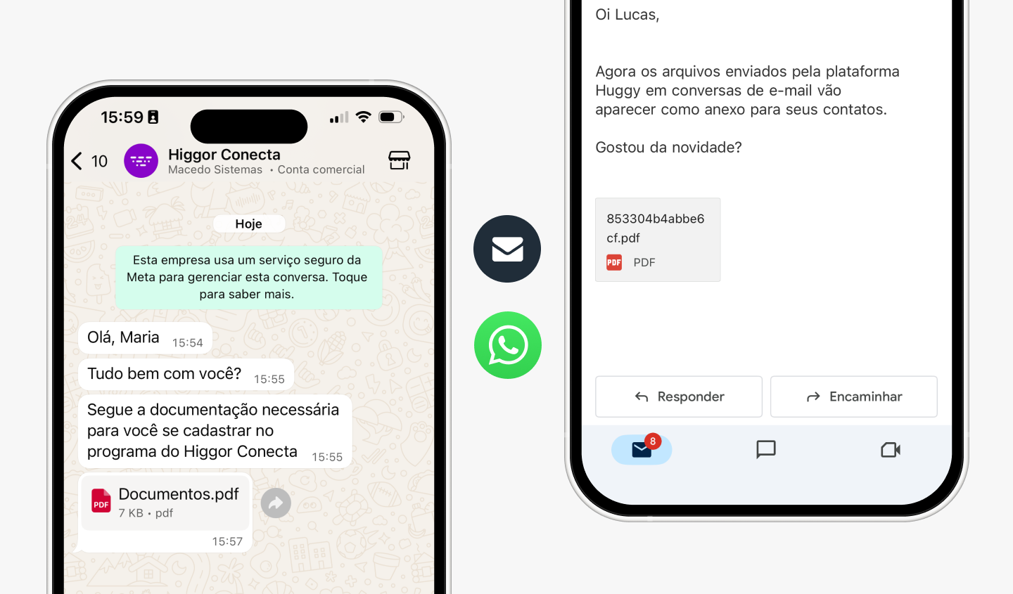 O envio e recebimento de arquivos permanece o mesmo, porém deixamos sua conta mais segura e trouxemos algumas novidades para melhorar a experiência de atendimento dos seus contatos pelos canais do WhatsApp e e-mail.